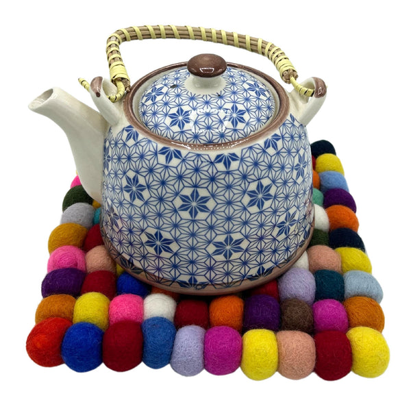 🌈✨ Brighten up your table with our Multicoloured Felt Ball Square Placemat. Handmade in Nepal from 100% wool, each coaster is crafted from vibrant felt balls, giving it a playful yet practical design. Perfect for protecting your surfaces while adding a pop of colour, these placemats bring warmth, charm, and a touch of artisanal craftsmanship to every sip. ☕
