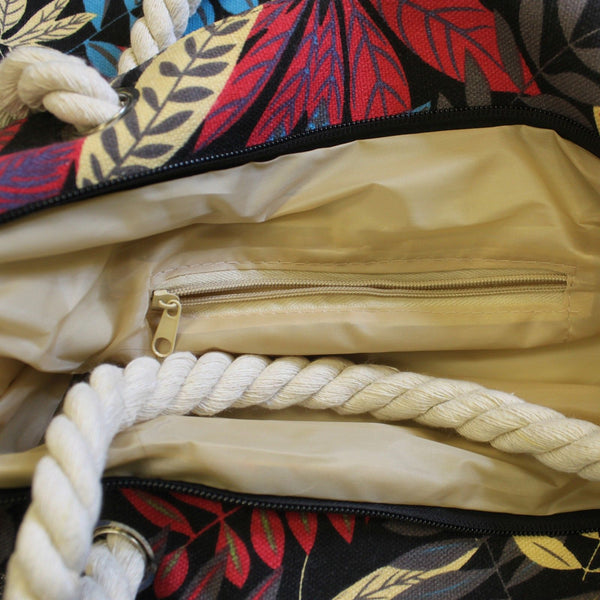 Rope Handle Bag - Red And Blue Flowers